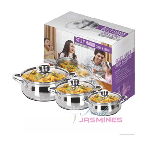 ARISTO LIVO BELLY HANDI FRYPAN 3 PCS. SET WITH GLASS LIDS